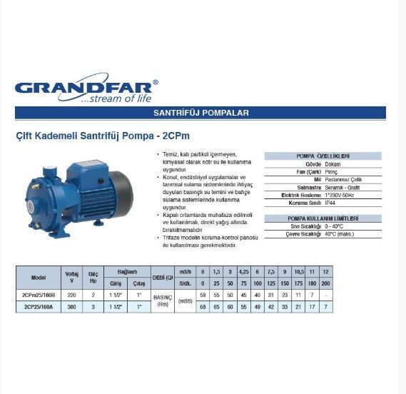 Grandfar 2CP 25/160A 3Hp 380V Döküm Gövdeli Çift Kademeli Santrifüj Pompa