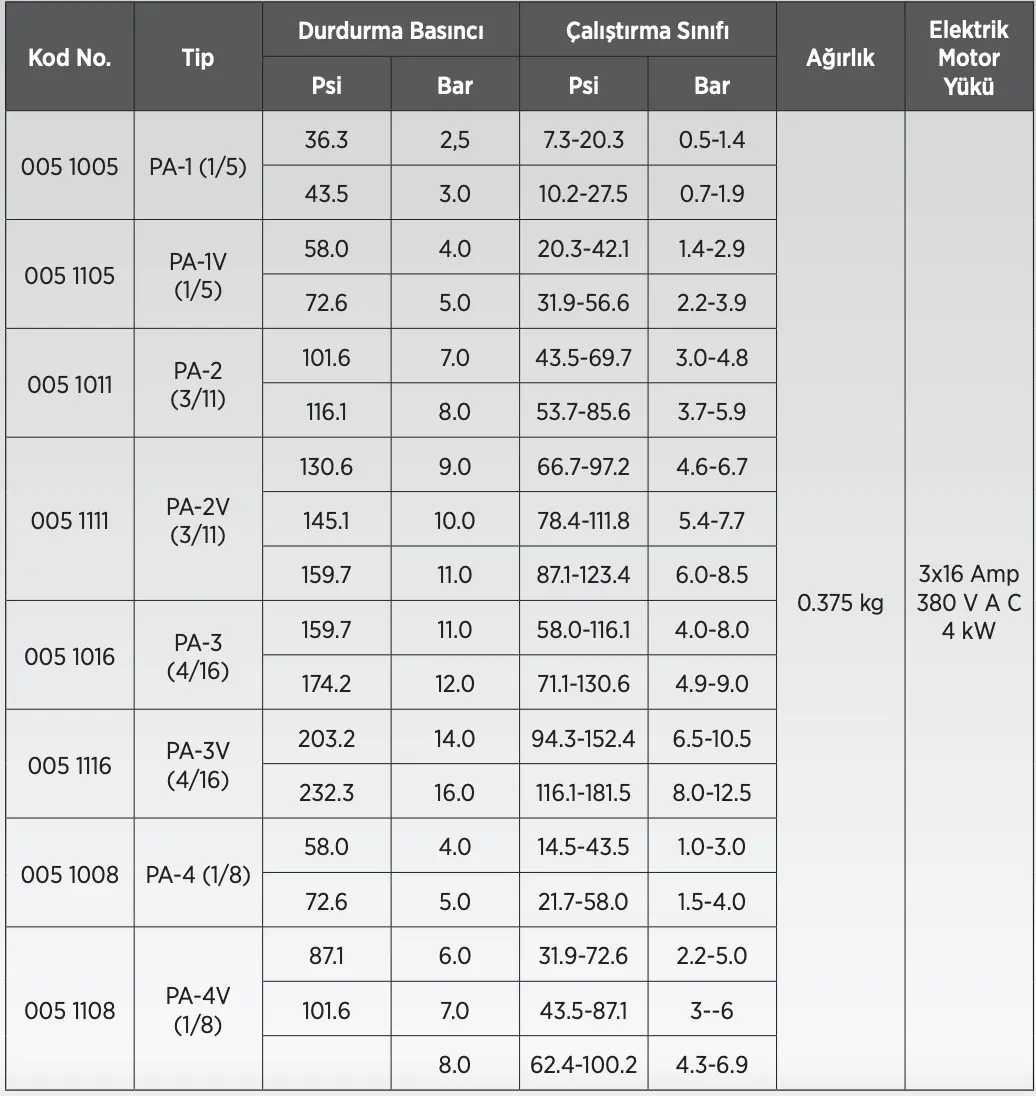 ETNA 3-11 Bar - Basınç Şalteri ½’’ Tahliye Valfli