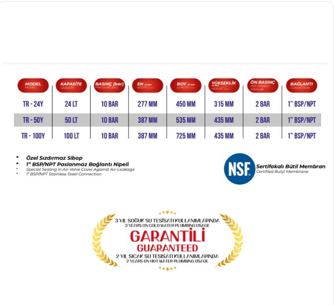 TR TANK 100 lt. 10 Bar Sabit Membranlı Yatay Genleşme Tankı